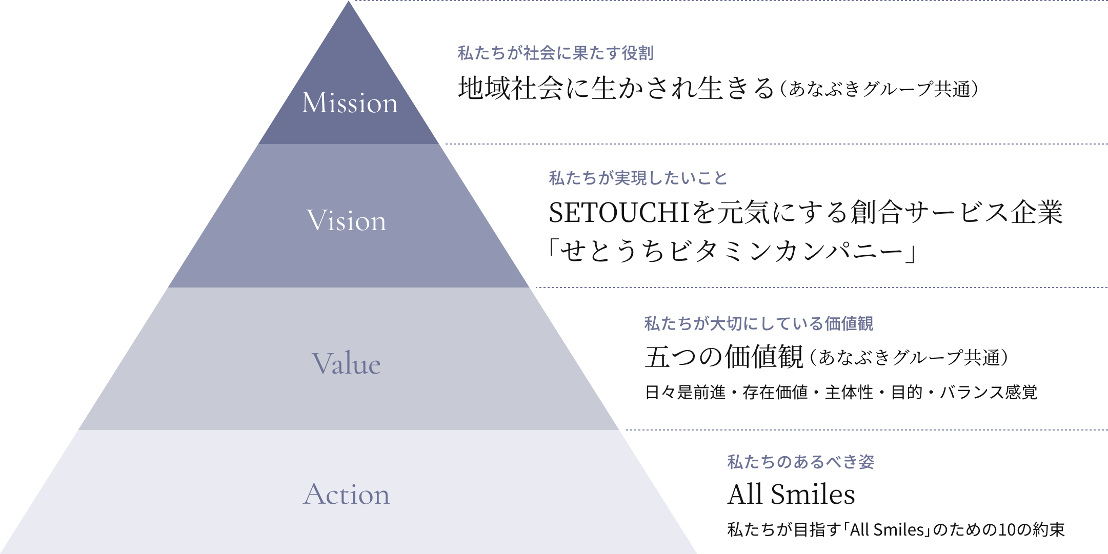 設立以来、積み重ねた知見と地域社会への感謝の念を礎として、お客様のご期待以上の価値を創造するところに、あなぶきエンタープライズの存在価値があると考えております。便利さを追求した機能性や効率性を提供するだけの時代は終わり、いかに情緒的な付加価値で豊かさを提供していけるのかが問われる時代です。お客様のニーズに対応し進化し続ける柔軟な組織として、私たちは歩み続けます。これからのあなぶきエンタープライズに、どうぞご期待ください。