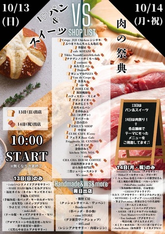 各日とも、家族で楽しめる様々なアクセサリーや雑貨、各種ワークショップなども出店し、食欲の秋+αで地域の賑わい作りにも貢献いたします。