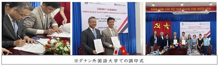 穴吹エンタープライズ株式会社(本社:香川県高松市/代表取締役社長:三村和馬、以下「当社」)は、海外との産学連携を目指し、グローバル人材の確保に取り組んでおります。この度、学校法人穴吹学園(本部:香川県高松市/理事長:穴吹忠嗣、以下、穴吹学園)と既に協定を結んでいる学校とのネットワークを拡充し、新たにベトナムの2大学(※1)と2024年10月23日および24日にインターンシップ協定を締結し、調印式を執り行いました。