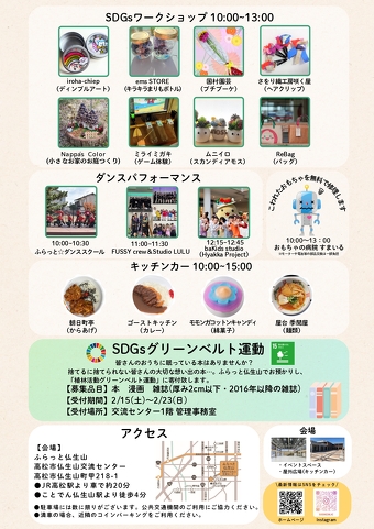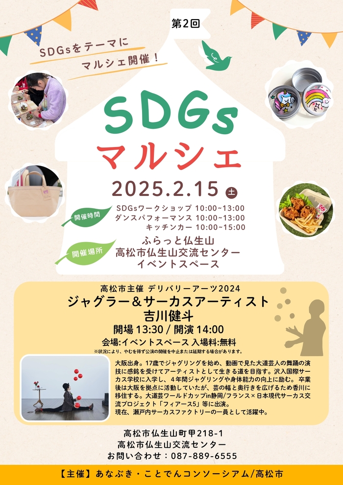 ふらっと仏生山 高松市仏生山交流センター(香川県高松市仏生山町甲218番地1、館長:宮本令子)では、地域の賑わい創りの一環として、「第2回SDGsマルシェ」を2025年2月15日(土)10時から開催します。