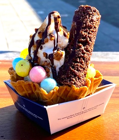 さらに、香川の伝統菓子「おいり」をカラフルにあしらうことで、見た目にも華やかで可愛らしいソフトクリームに仕上げました。ひと口ごとに広がる瓦せんべいの香ばしいザクザク感と、おいりのふんわり軽い口どけ、そしてミルクのコクのあるソフトクリームが絶妙に重なり合い、心まで満たされるご当地ならではの極上スイーツをお楽しみいただけます。