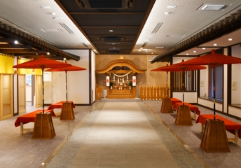 五人百姓を思わせる野立傘や船大工の技で築かれた祠が訪れる人を温かく迎え入れます。