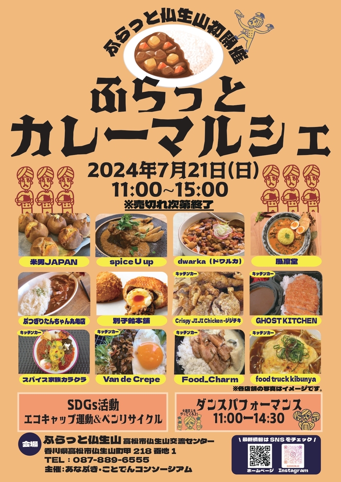 ふらっと仏生山 高松市仏生山交流センター(香川県高松市仏生山町甲218番地1、館長:宮本 令子)で、地域の賑わい創りの一環として、ふらっとカレーマルシェを2024年7月21日(日)11時から開催します。