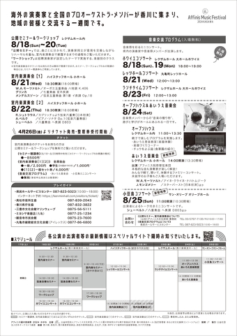 香川県県民ホール[レクザムホール](館長:谷 明子)は、2024年8月17日から9日間にわたって「アフィニス夏の音楽祭 2024 かがわ」を開催します。