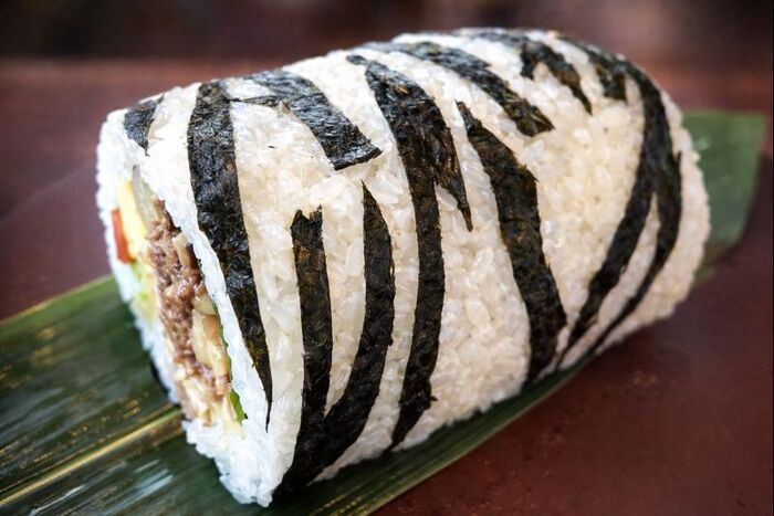 この「さぬき縞ウマうどん恵方巻」は、酢飯の表面に海苔を縞模様にあしらい、まるでシマウマのようなビジュアルに仕上げた、遊び心あふれる恵方巻です。断面にはさぬきうどんを芯に据え、香川ならではの食文化を表現しました。