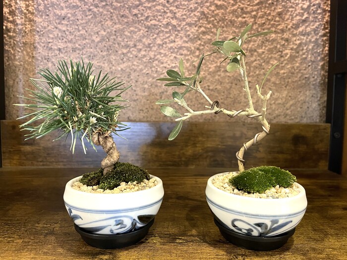 本商品は、自宅の玄関やお部屋のしつらえとして気軽に飾ることができ、日々の暮らしの中で自然を身近に感じていただけます。津田の松原で「松」を手に取り、香川を象徴する「オリーブ」を飾る。小さな器に瀬戸内の風景を閉じ込めた盆栽です。